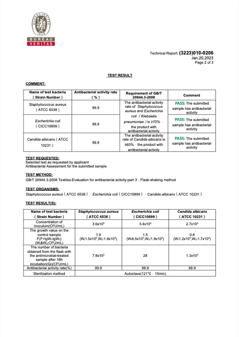 Исследование подтвердило, что ткань Beauty Sleep с медной нитью обладает антибактериальными свойствами и убивает 99,9% бактерий, уничтожая среду для возникновения бактерий